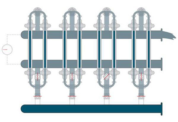 內(nèi)部反沖洗:利用其它過(guò)濾器的濾液逆向流動(dòng)來(lái)沖洗濾網(wǎng)外表面的濾餅,反沖洗時(shí),控制器切換待反沖洗過(guò)濾器的閥門(mén)打開(kāi)排污閥,其他過(guò)濾器過(guò)濾后流體的一部分液體逆向流動(dòng)反沖洗該過(guò)濾器,迅速清除濾網(wǎng)表面的濾餅,排出殘液流入集污管道,然后關(guān)閉排污閥,打開(kāi)進(jìn)口閥,恢復(fù)到正常過(guò)濾狀態(tài)??刂破鲗?duì)過(guò)濾器逐一反沖洗后,整個(gè)反沖洗過(guò)程完成,當(dāng)其中一個(gè)過(guò)濾單元被反沖洗時(shí),其他過(guò)濾器處于正常過(guò)濾狀態(tài)。該反沖洗方式用于粘性較低的非貴重流體且要有較大的反沖壓力的(即系統(tǒng)壓力大于4Kg,視粘度而有一定差異)。